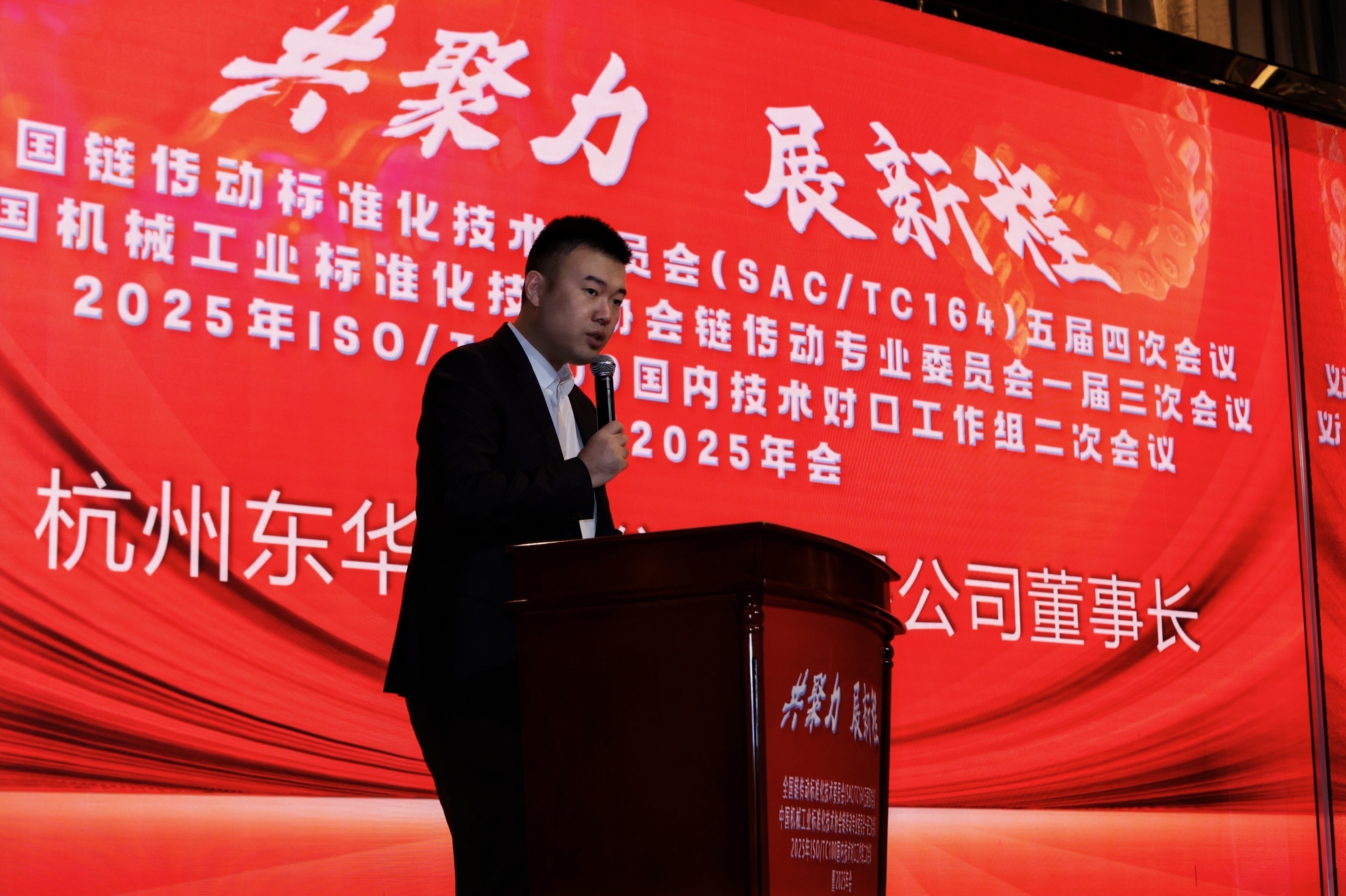 宣成致欢迎词,代表东华链条向全体与会嘉宾表示热烈的欢迎,向长期以来关心和支持链传动行业发展的各级标准化组织、各级政府以及各级主管部门、各位专家学者、行业企业致以最诚挚的感谢!他表示,东华链条集团自创立以来始终坚持将标准化作为企业技术创新以及品质提升核心战略,东华不仅是标准化的执行者,更是标准的参与者和推动者。东华链条将继续加大研发投入,推动产、研、学、用深度融合,助力链传动行业标准高水平发展。