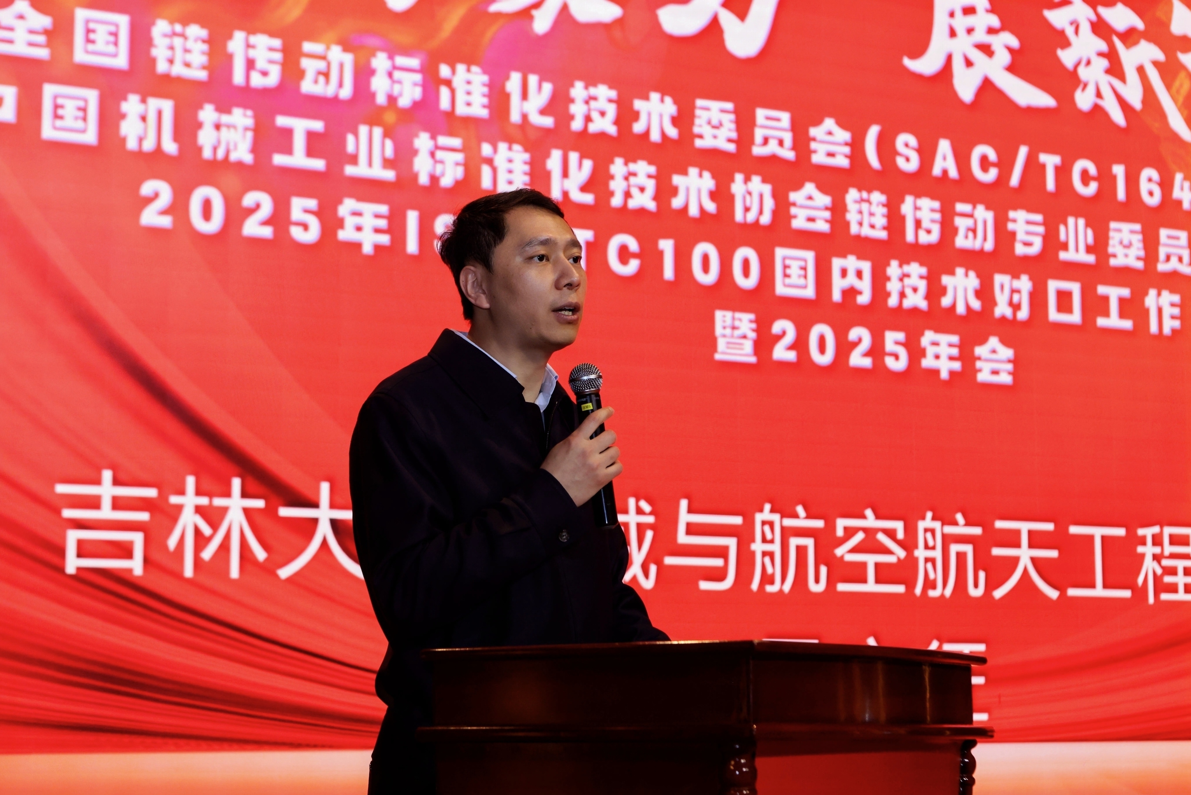 吴文征在讲话中,代表吉林大学、吉林大学机械与航空航天工程学院向各位领导、委员、企业代表,表示最热烈的欢迎,向长期以来关心支持链传动领域标准化工作的各级政府致以最衷心的感谢!他说链传动是装备制造业的关键基础部件,广泛应用于高端制造、航空航天、交通运输等诸多战略领域,其标准化水平,直接关系到产业质量升级,技术创新突破和国家科技竞争力。他提出三点希望:一是希望各位委员和专家以高度的责任感和使命感,严把标准质量关,推动制定更多具有科学性、前瞻性、适用性的好标准;二是希望全行业加强协同,凝聚合力,深化企业、高校、科研院所间的交流合作,共同打造链传动产业发展的共同体;三是希望大家放远全球,勇攀高峰,主动对接ISO/TC100等国际标准化组织,积极参与国际标准制定,推动中国链传动标准走向世界。